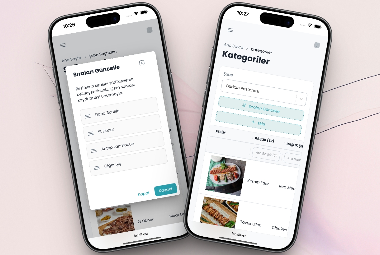 - Menü eklemek, fiyat güncellemek veya görsel değiştirmek — hepsi birkaç tıklamayla.